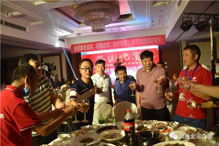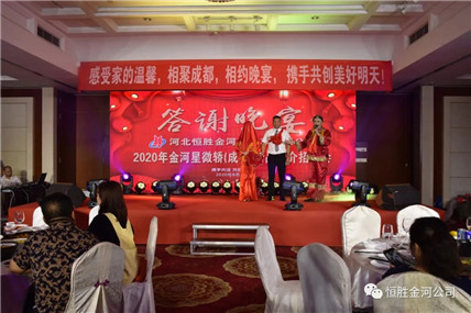 晚上18:30分,金河星微轎(成都)新品推介招商會(huì)答謝晚宴在酒店三樓宴會(huì)廳隆重召開,公司總經(jīng)理上臺(tái)獻(xiàn)唱并向家人們敬酒,精彩的演出五花八門,驚喜不斷,現(xiàn)場互動(dòng)環(huán)節(jié)禮品不斷送出,嗨翻到極點(diǎn),河北恒勝金河公司與會(huì)工作人員一起演唱(朋友)送給到場的所有經(jīng)銷商朋友,感謝家人一路的支持與陪伴,晚宴現(xiàn)場氣氛高漲,溫馨融洽,充滿歡聲笑語。