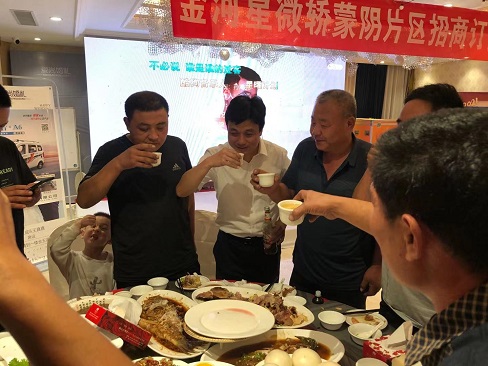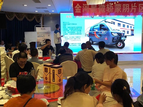 為了慶祝山東沂蒙片區(qū)金河星微轎銷量在全國區(qū)域領先,更好的擴大品牌影響力,打造產(chǎn)品知名度,將金河星微轎多款新品實惠價格推向市場。9月3日,山東沂蒙片區(qū)招商訂貨會在維也納酒店順利召開!山東朋友豪爽好客,淳樸善良,金河星也在這片熱情的土地上開枝散葉,發(fā)展壯大。金河公司銷售副總郭文斌,技術部部長趙松領,山東區(qū)域經(jīng)理梁永茂參加本次招商訂貨會。凡參加會議的商家朋友都能領到一份精品禮品,首先銷售副總郭文斌為本次會議講話,講解本次會議中新品車型,優(yōu)惠力度,加盟門檻等等;技術部部長趙松領詳細講解車型結(jié)構(gòu)設計,技術標準及產(chǎn)品特點、優(yōu)點、亮點、賣點等等;會議結(jié)束后眾多商家朋友參觀微轎車型,訂購金河星產(chǎn)品,實力廠家,優(yōu)惠價格,潮流產(chǎn)品,何樂而不為之!最后廠商一起共進晚宴,郭總深情獻歌,雙方熱情交談,相互敬酒,現(xiàn)場歡歌笑語,氣氛融洽!